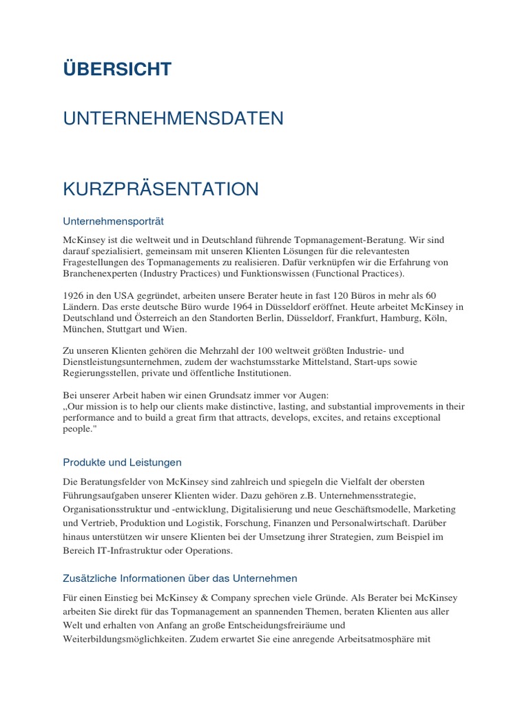Mckinsey anschreiben. Our solutions improve life quality by preventing illness enabling healthier lifestyles and supporting a safe environment. Alle eingegangenen bewerbungen werden bis zum nächsten stichtag gesammelt und dann geprüft. Aber wir schaffen auch räume in denen persönlichkeiten wachsen.